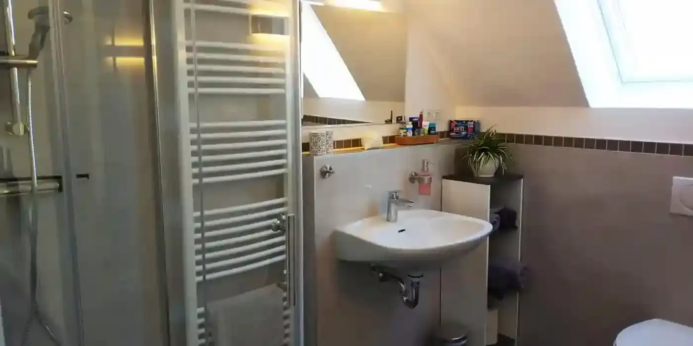 Willkommen in unserer Ferien- und Monteurwohnung Am Uchtelberge! Es erwarten Sie zwei Schlafzimmer mit großen Betten und Duschbad zur vollen Entspannung.